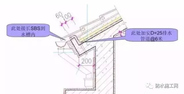 屋面板的水要到沿口水槽内,就必须比它高,而且要作好结合;现在水槽与屋面板有距离,只能接瓦上的水;而从瓦漏下的水只有积在楼板上。