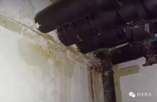 (2)沉降缝内的中埋式止水带,在浇筑结构混凝土时由于振捣等原因错位,在外侧防水层失去使用功能时,止水带也起不到其正常的防水效果,另外,在使用过程中,结构沉降变形过大,止水带抵挡不住结构的过度变形,在变形的过程中被拉断。(3)结构裂缝渗漏主要原因:外墙防水层未能满粘到结构面上,或外防水局部破坏,导致外墙结构与防水层之间窜水,在结构墙体有空洞、裂缝及浇筑缺陷的部分就会有向内部空间渗漏的现象。(4)穿墙管部位也是外防水薄弱的环节,如选用卷材处理管根,该部位卷材搭接边较多,很难做到所有部位搭接满粘,另外穿墙管周边混凝土振捣密实程度不够,在管根周边外防水出现问题后,就会从接缝周边向内渗漏。