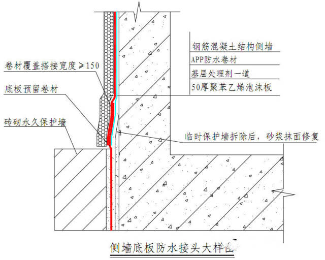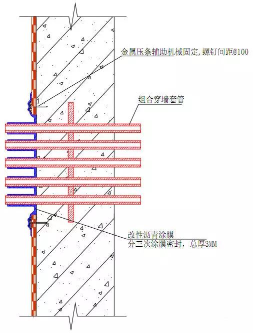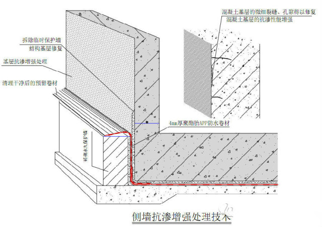 采用水泥基渗透结晶型防水涂料 +改性沥青防水涂料 +卷材的复合防水做法。: