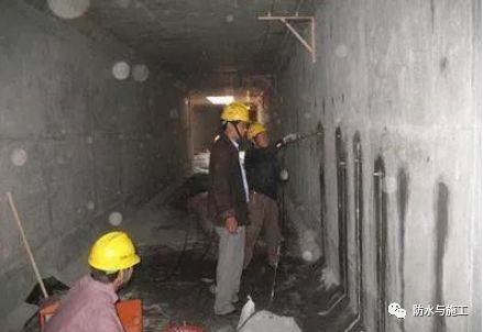 此外,还可采用“面层封闭注浆”的方法,即先下管引水,然后用聚合物水泥防水砂浆大面积抹面,待砂浆强度达到要求后,从引水管注浆堵水。